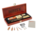 Hoppe's Deluxe Gun Cleaning Kit wooden box kit contains premium parts and accessories. Starting from the 3-piece brass rod to the phosphor bronze brushes and Hoppe's No. 9 Gun Bore Cleaner, this kit includes everything needed to clean and care for firearms.