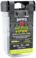 The Hoppe's Boresnake® Viper takes the technology of the original Boresnake® and increases the cleaning power by adding an additional set of brushes. This one-pass bore cleaning solution uses integrated bronze brushes to scrub out carbon fouling, while the tail clears the barrel of loose debris with a surface area 160x larger than a standard patch. It also has an integrated cone-shaped bore guide on the leading end and the brass weight has the caliber stamped on it. The Boresnake® Viper Den now includes a T-handle for easier pull through of your pistol and a reusable carrying case that you can keep in your range bag or backpack to protect your Boresnake® Viper during transport.